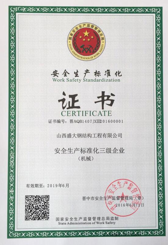 山西盛大鋼結構工程有限公司 山西盛大鋼結構工程有限公司成立于1996年,坐落于國家歷史文化名城——山西祁縣。擁有兩大智能化鋼結構生產基地,占地110畝,建筑面積3萬余平方米,具備鋼結構專業承包貳級、建筑工程施工總承包貳級資質,是一家集設計、制造、施工于一體的大型鋼結構工程企業。 盛大鋼構是中國鋼結構協會會員單位,山西鋼結構協會副會長單位,山西建筑企業商會理事單位,山西省土木建筑學會會員單位,擁有國家知識產權局注冊商標。公司已通過ISO9001質量管理體系認證,體系覆蓋鋼結構加工與施工等核心… more +